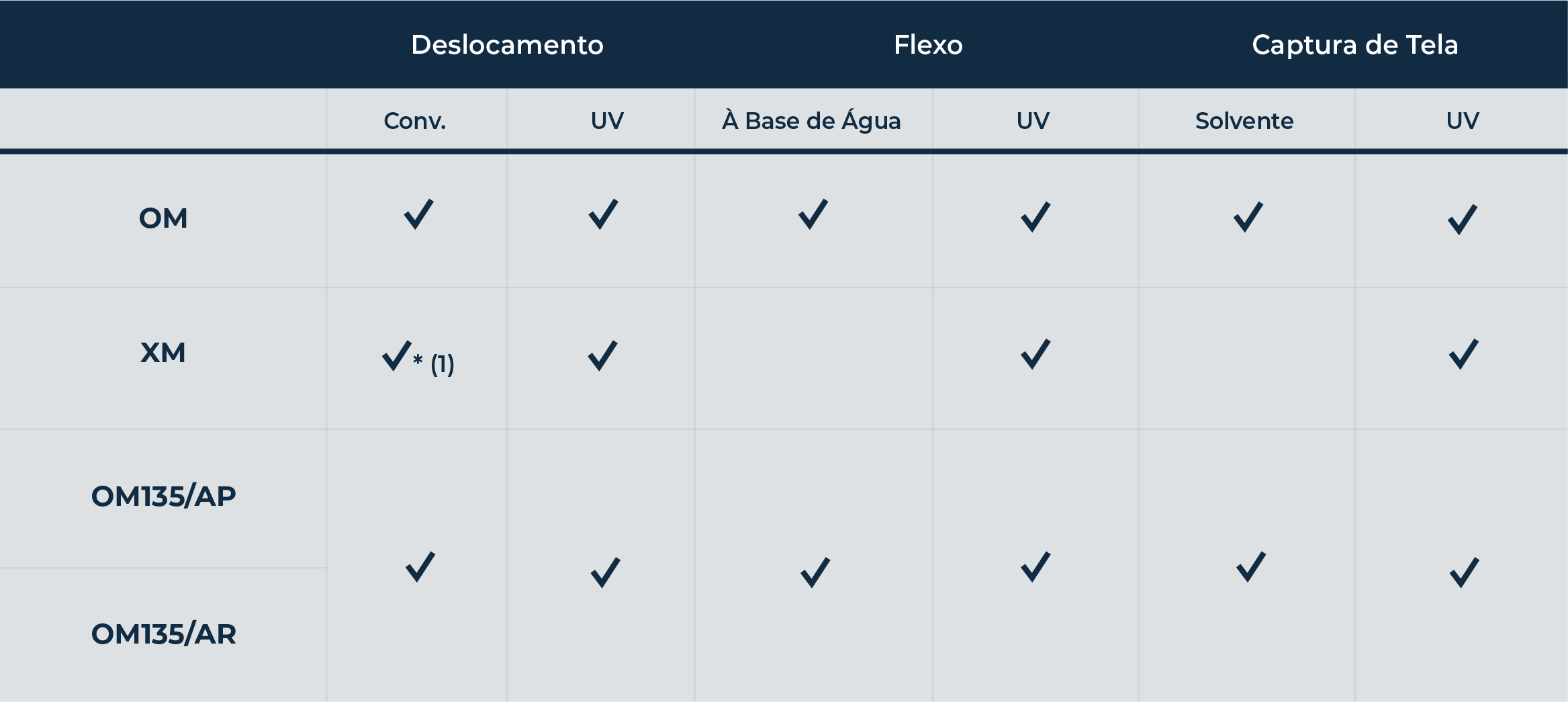 ✔* Compatível sob certas condições / com limitações. Consulte as recomendações para impressão e acabamento